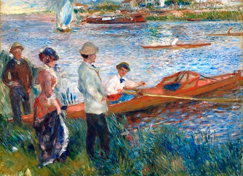 La barque allait s’engager dans un petit bras, sombre et étroit, s’enfonçant entre deux îles. On entendait, derrière l’une des îles, les chants adoucis d’une équipe de canotiers qui devaient remonter la Seine. Au loin, en amont, la rivière était libre.